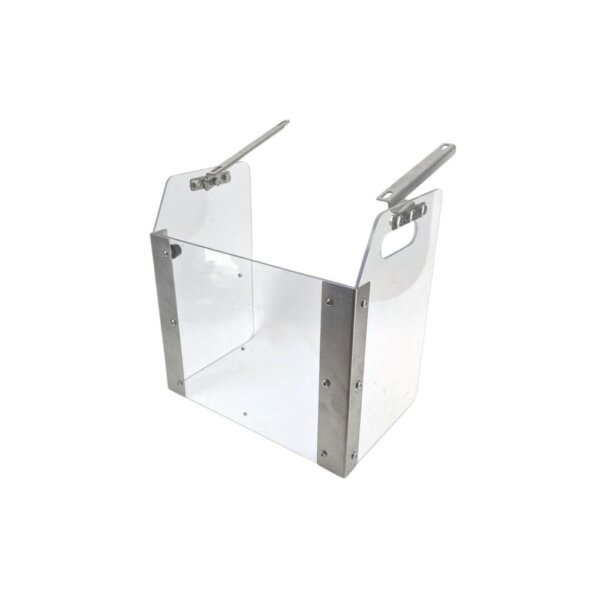 Der Spritzschutz besteht aus robustem Polycarbonat und wird mit Edelstahl-Schrauben (304) geliefert. Er kommt flach verpackt und ist einfach mit einem Inbusschlüssel zu montieren – ideal auch für enge Arbeitsbereiche, Theken oder Bars.