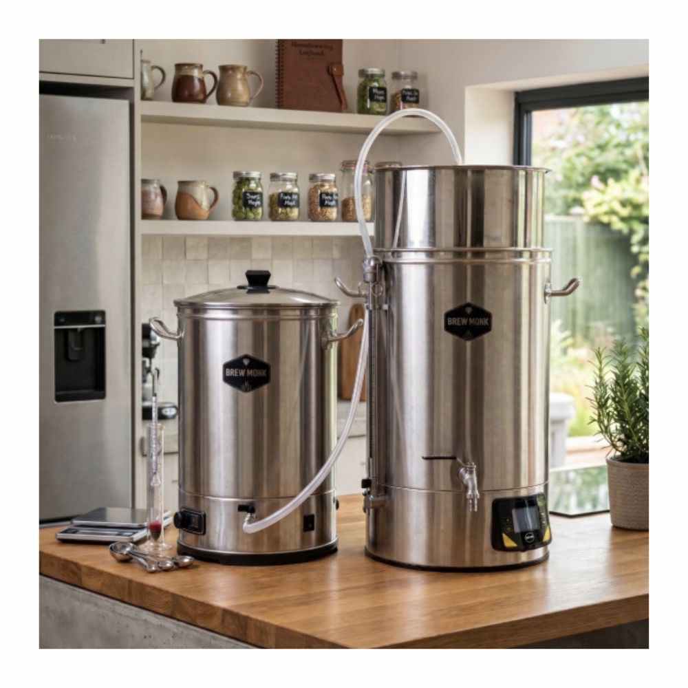Die integrierte Pumpe ist der zentrale Vorteil dieses Systems, weil sie den Nachguss im Läuterprozess direkt übernimmt. Dadurch ist das Gerät als sofort einsatzbereite Komplettlösung ausgelegt und benötigt kein zusätzliches Zubehör. Der digitale Thermostat ermöglicht das kontrollierte Aufheizen des Wassers, während die Heizleistung von 2,5 kW für eine praxisgerechte Erwärmung sorgt. Mit 22 Litern Kapazität eignet sich das Gerät für typische Anwendungen im Hobbybraubereich für Sude bis zu 70 Liter. Der mitgelieferte lebensmittelechte Brew Monk Silikonschlauch macht das System direkt betriebsbereit und erlaubt die einfache Einbindung in bestehende Setups.