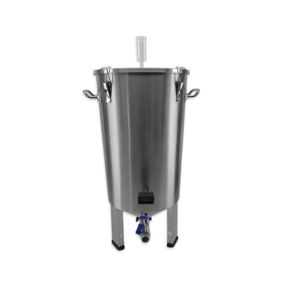 Der Edelstahl Gärbehälter 32L – zylindrokonischer Gärtank ermöglicht dir einen kostengünstigen Einstieg in Richtung einer professionalisierten Heimbrauerei. Als zylindrokonischer Gärtank aus Edelstahl bietet der Edelstahl Gärbehälter 32L alle Vorzüge, die auch große Brauereien nutzen. Die Fertigung aus langlebigem Edelstahl sorgt für perfekte Hygiene, der Klarablass-Hahn ermöglicht ein einfaches Abfüllen von trubfreiem Bier, und über den Totalablass im Konus lassen sich Trub und Hefe problemlos abscheiden oder ernten. Mit seinem Gesamtvolumen von 32 Litern besitzt der Edelstahl Gärtank die ideale Größe für 20- bis 28-Liter-Sude.