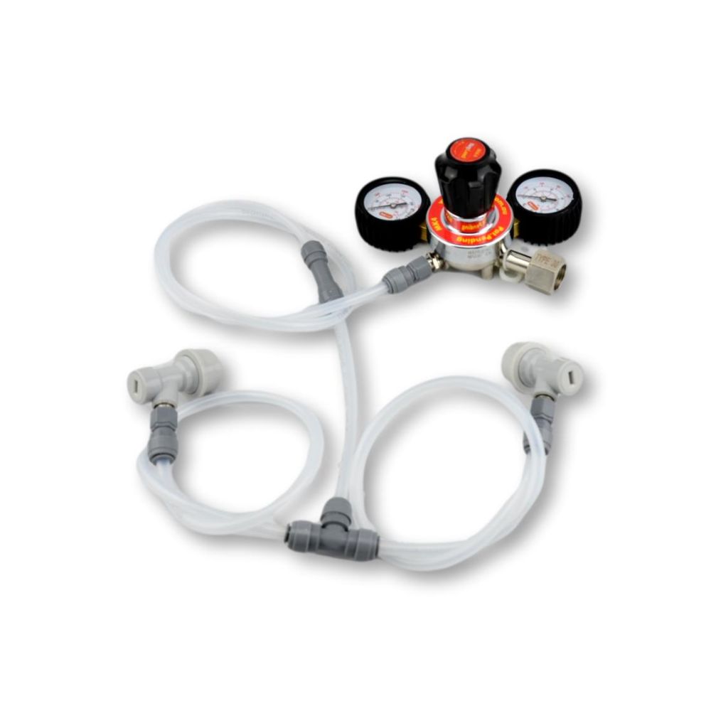 Info: Mit diesem Set baust du aus einer CO₂-Flasche zwei Gasleitungen auf und kannst zwei NC-Kegs gleichzeitig betreiben